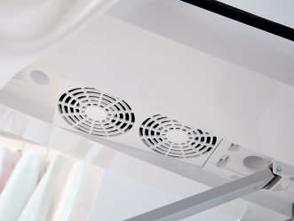 Y finalmente, destacamos la tabla de la plancha del FashionMaster B3847 de Miele, que contiene dos ventiladores; uno con función de extracción, para conseguir una penetración óptima del vapor y otro,con una función de hinchado, para proteger los tejidos más delicados.